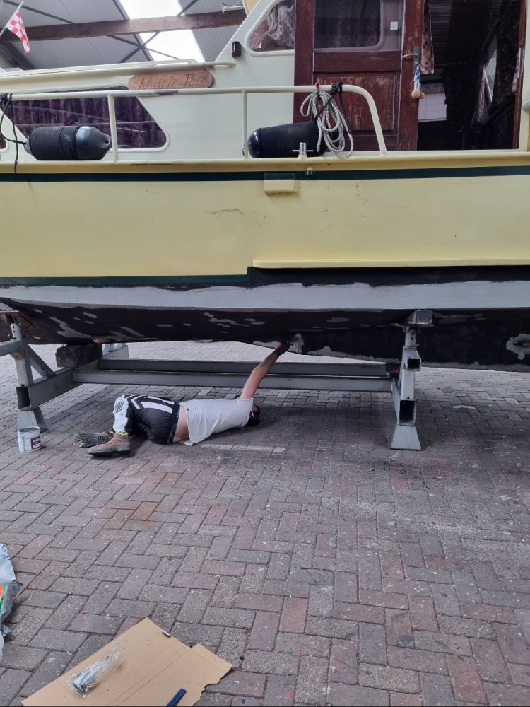 Dit voorjaar is met name het onderwaterschip aan de beurt. Gezien we de boot vanuit het water hebben gekocht, hadden we geen idee wat de staat was van het onderwaterschip eruit zag. Nu dus wel..
