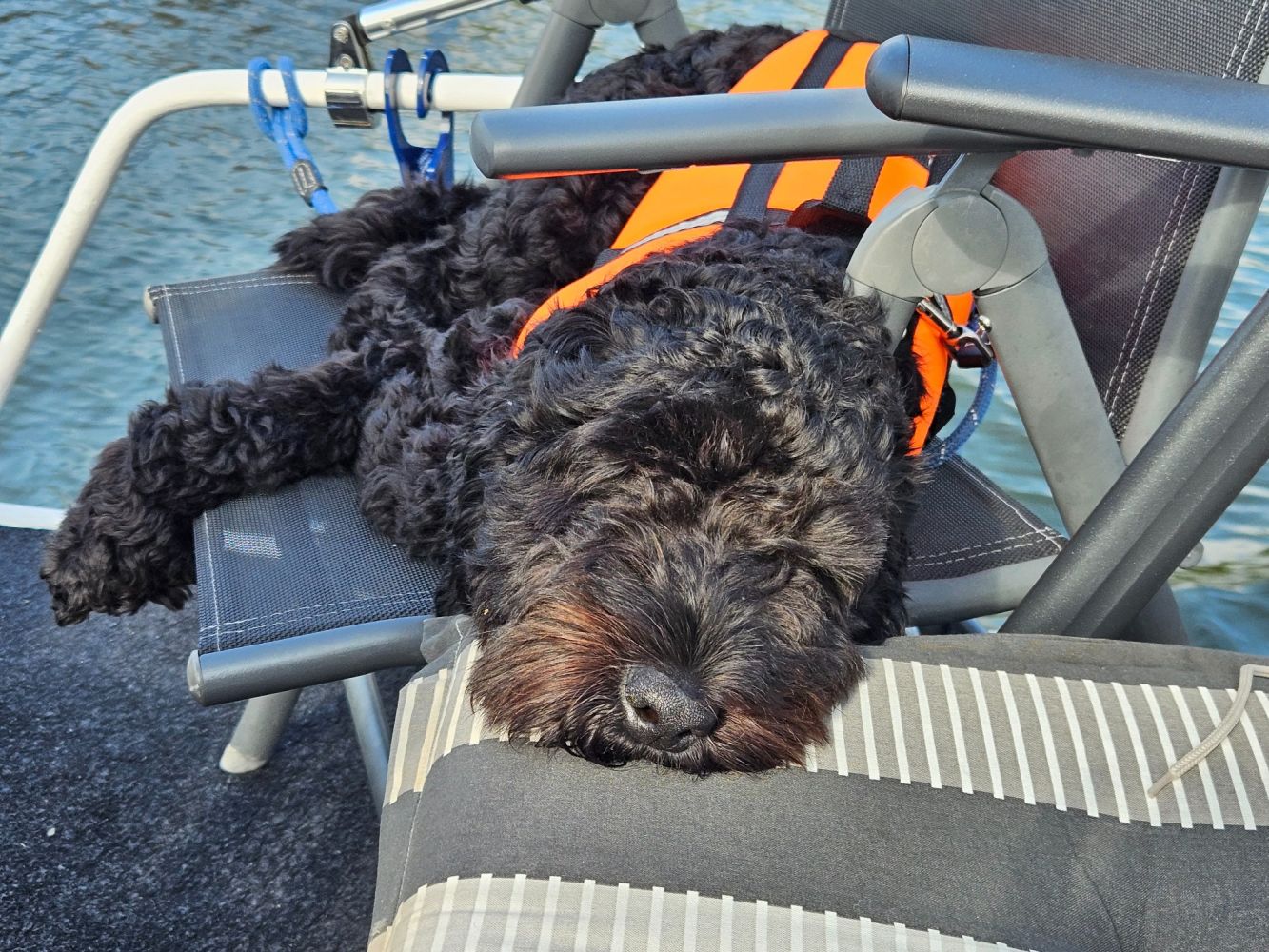 Het weer was geweldig. De hele weg zonder kapje kunnen varen. Met het zonnetje erbij werd het al snel warm, maar door het briesje totaal geen last van. Zelfs Jasper niet.