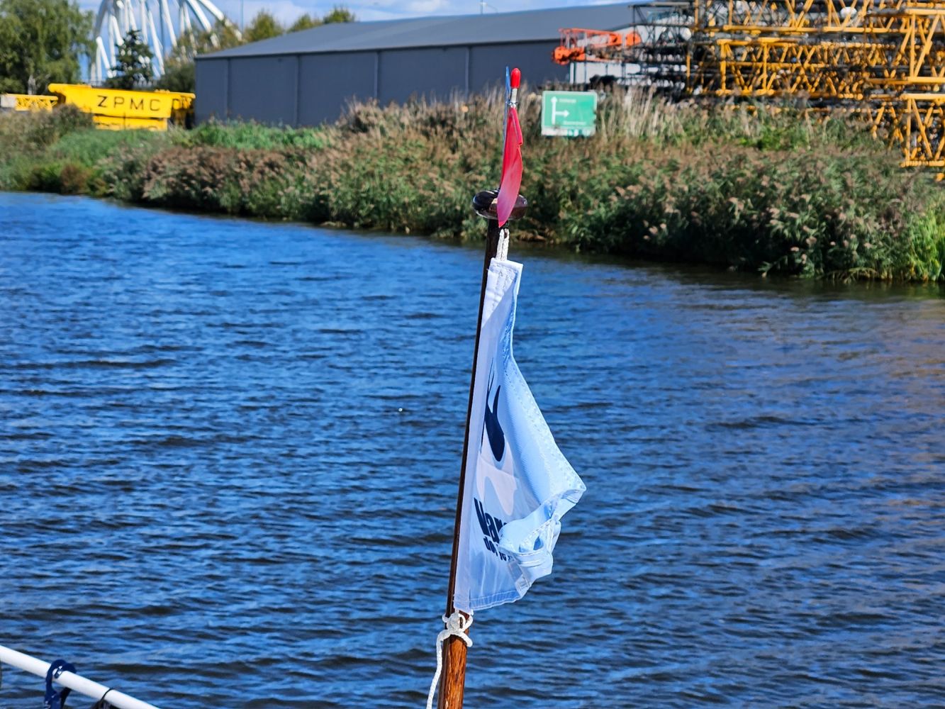 Marjan moest op het achterdek nog de touwen wat vieren, maar Jasper wilde de andere kant op. Gevolg? Jasper te water! Gelukkig had hij zijn zwemvest aan zodat we hem op.de kant konden hijsen. Note to self: Jasper vastzetten als.we ergens aankomen..