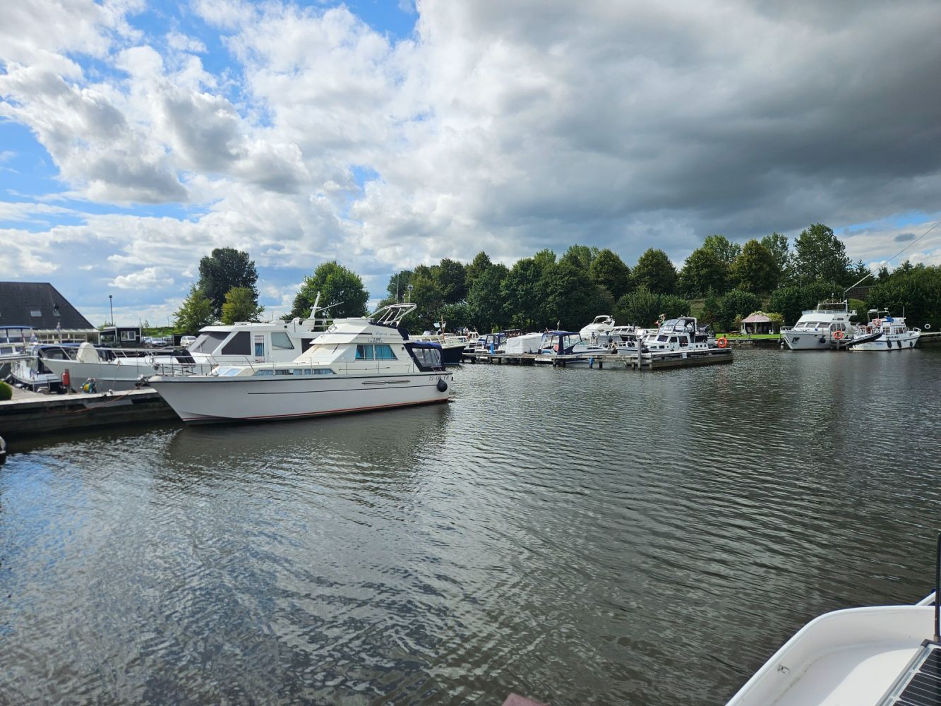 Het zonnetje kwam er lekker door en bijna de hele weg in het zonnetje kunnen varen. Bijna bij de thuishaven kwamen wat donkere wolkjes en begon het weer stevig te waaien. En dat was niet zo prettig..