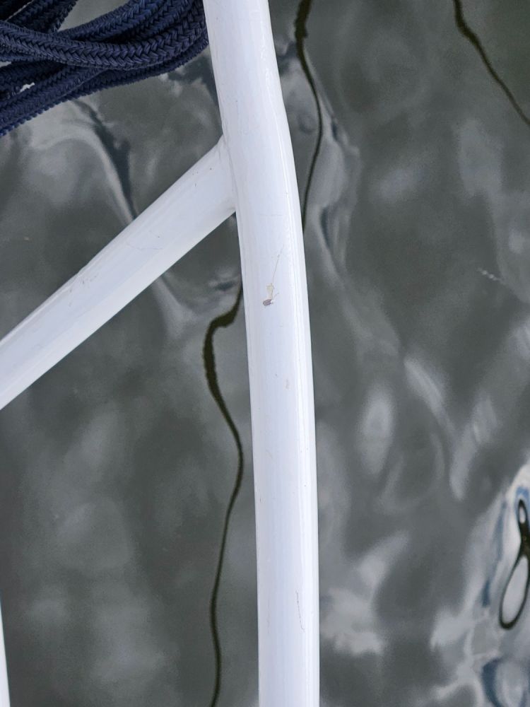 Gearriveerd in de haven moesten we uiteraard afmeren in de box. En dat lukte helaas niet. We waaiden volledig weg en de eerste schade was een feit.. Gelukkig alleen aan de railing dus snel te herstellen.