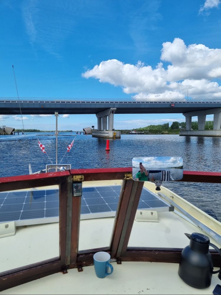 Deze route is, na een paar korte dagen, een lange van 46 kilometer. We denken hier ongeveer 6 uur over te gaan doen. We hebben 2 bruggen en 1 sluis, maar we gaan wel wat groter water over.