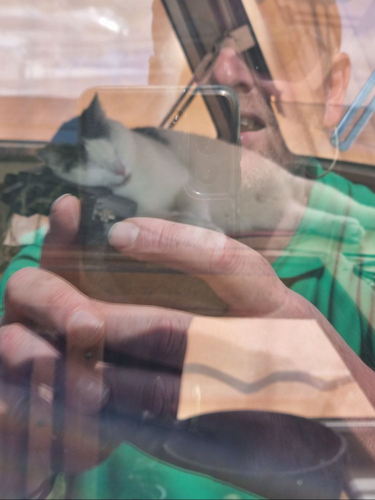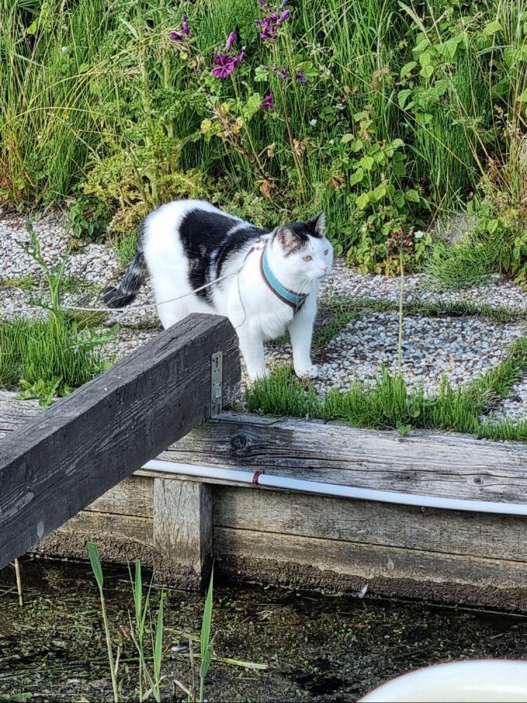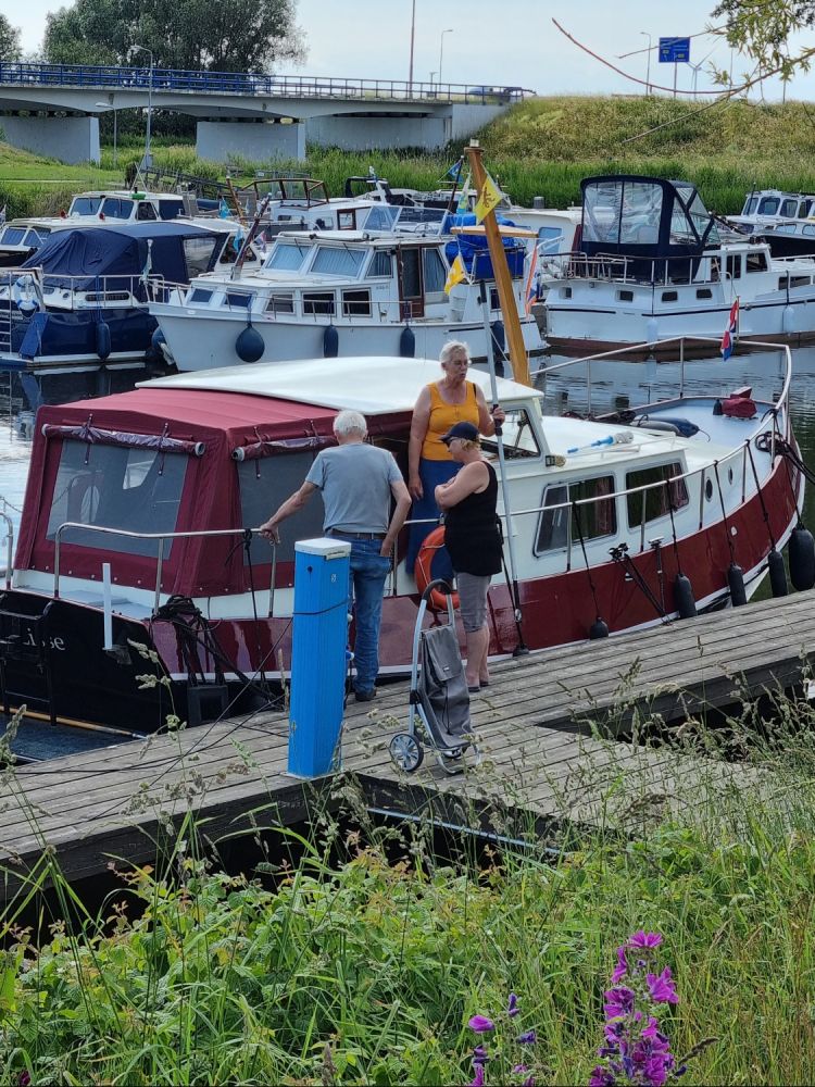 De buren komen uit Lisse. Aan boord hun 2 katten. Helemaal geweldig! Voelen zich helemaal thuis op de boot. Ik heb geprobeerd nog een foto van 1 te maken.