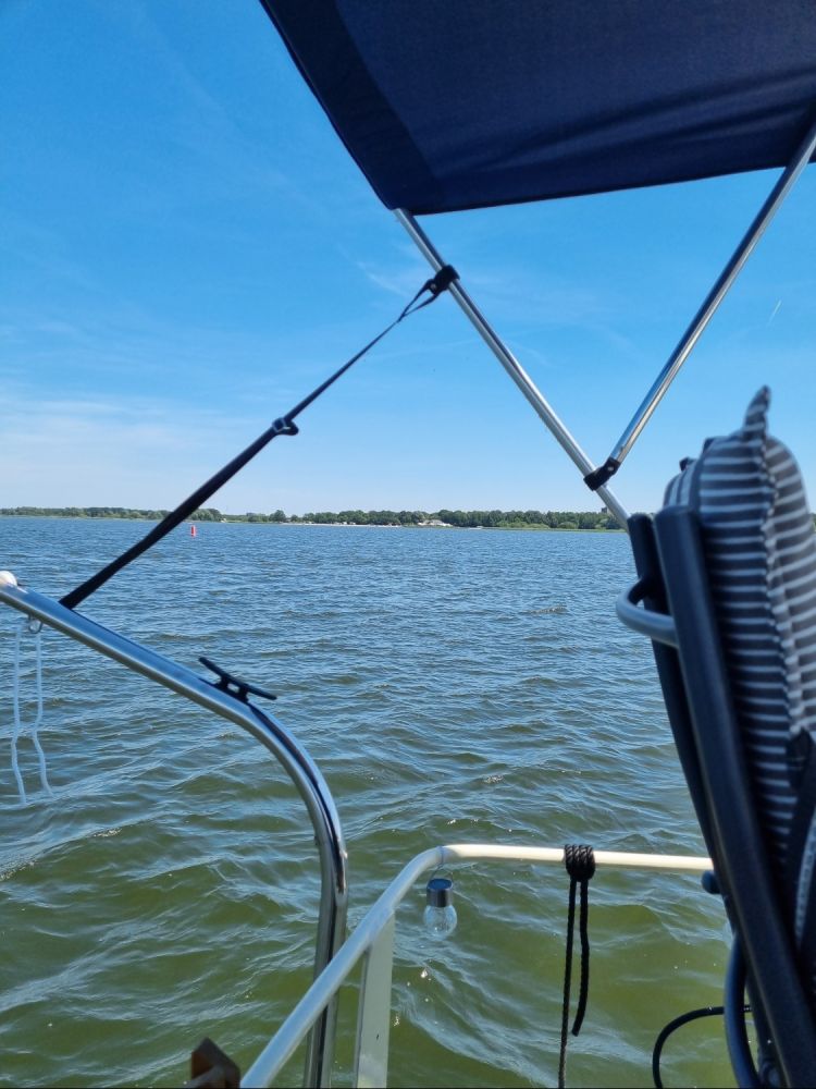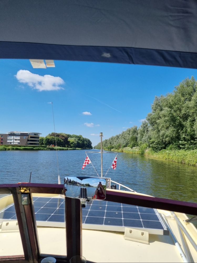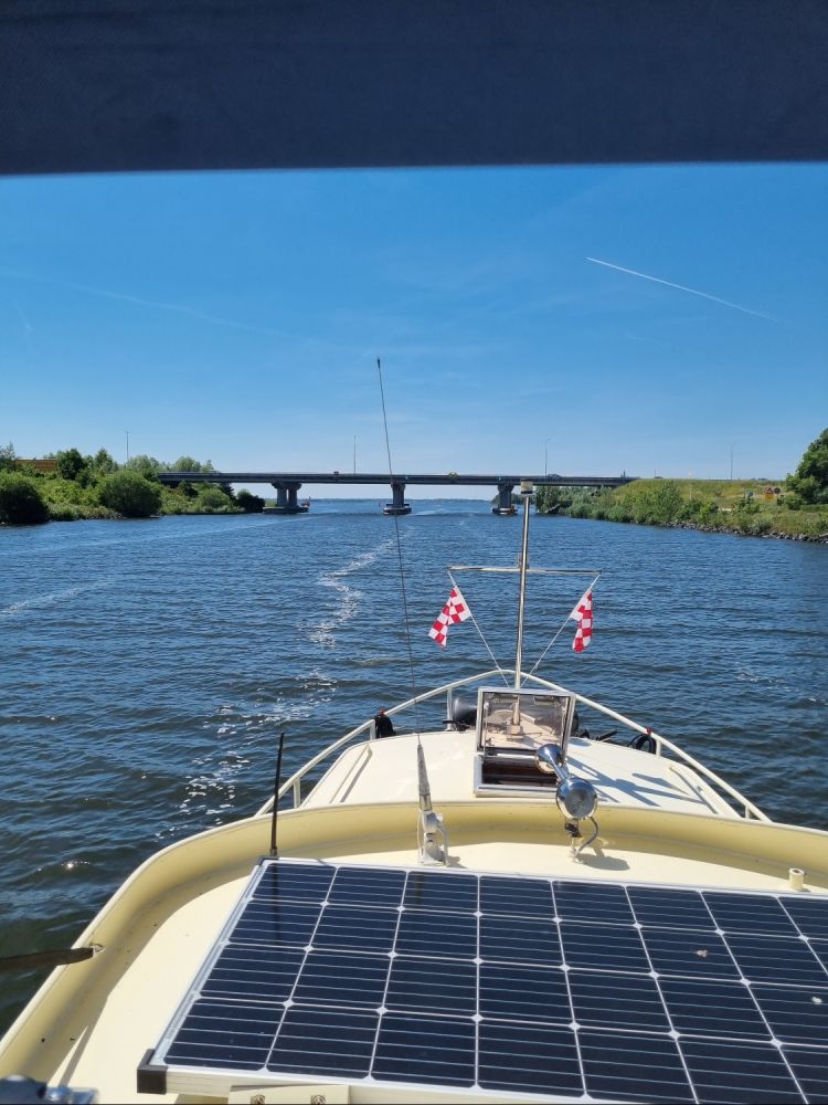 Gisteravond namen we de route van vandaag nog even door. Eigenlijk zoals we iedere avond de route van de dag erna doornemen. Voor de eerste sluis waar we doorheen moesten, was een waarschuwing afgegeven dat er werkzaamheden waren en de sluis tot 12.00 uur gesloten was. Gezien het van Biddinghuizen tot aan de sluis slechts 1,5 uur varen was, lekker uitgeslapen en pas om 11.00 uur vertrokken. De buurtjes nog even dag gezegd, gezwaaid naar de havenmeester en, hop, er van tussen.