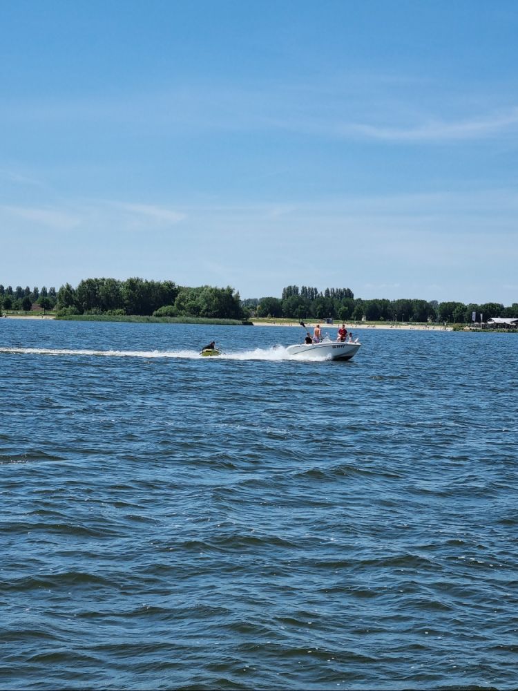Toen het open water op. Het waaide bijna niet en was het goed toeven. Mooi uitzicht over Strand Horst en Nulde. En uiteraard de A28 waar we zo vaak overheen hebben gereden.