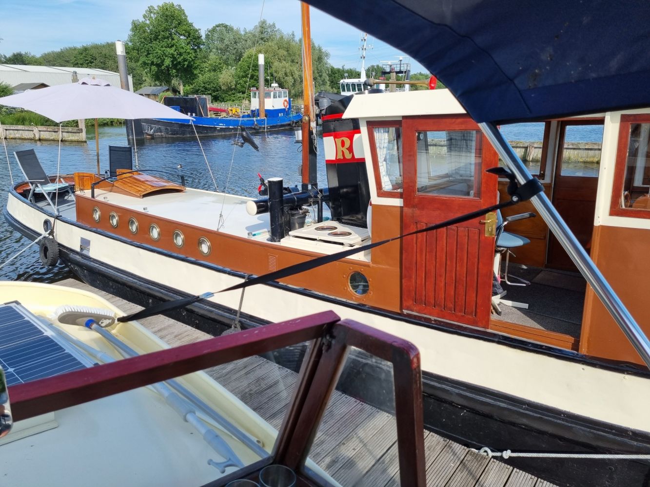 We liggen naast een boot van meer dan 100 jaar oud. Het was een stoomsleper geweest die in 1942 is omgebouwd naar een dieselsleper. Volgens mij zijn onze buren de eerste eigenaar.
