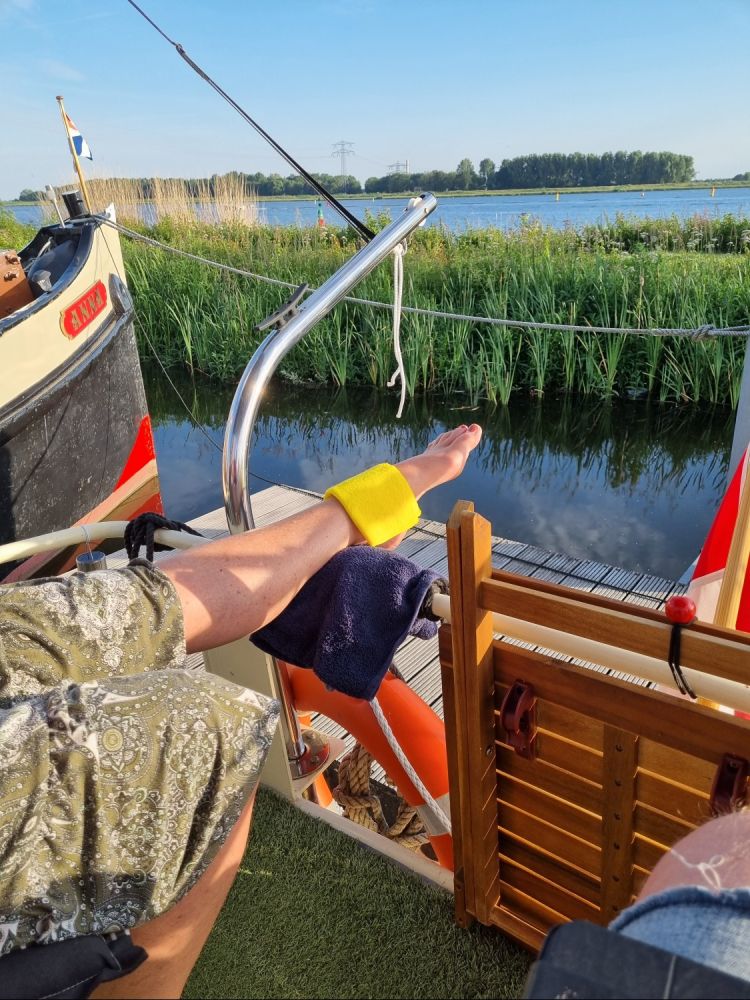 Marjan heeft de matjes op maat gemaakt, zodat we weer fatsoenlijk kunnen in- en uitstappen. Al heeft Marjan zich behoorlijk verstapt.. Dikke enkel tot gevolg.. Hopelijk morgen een stukje beter.