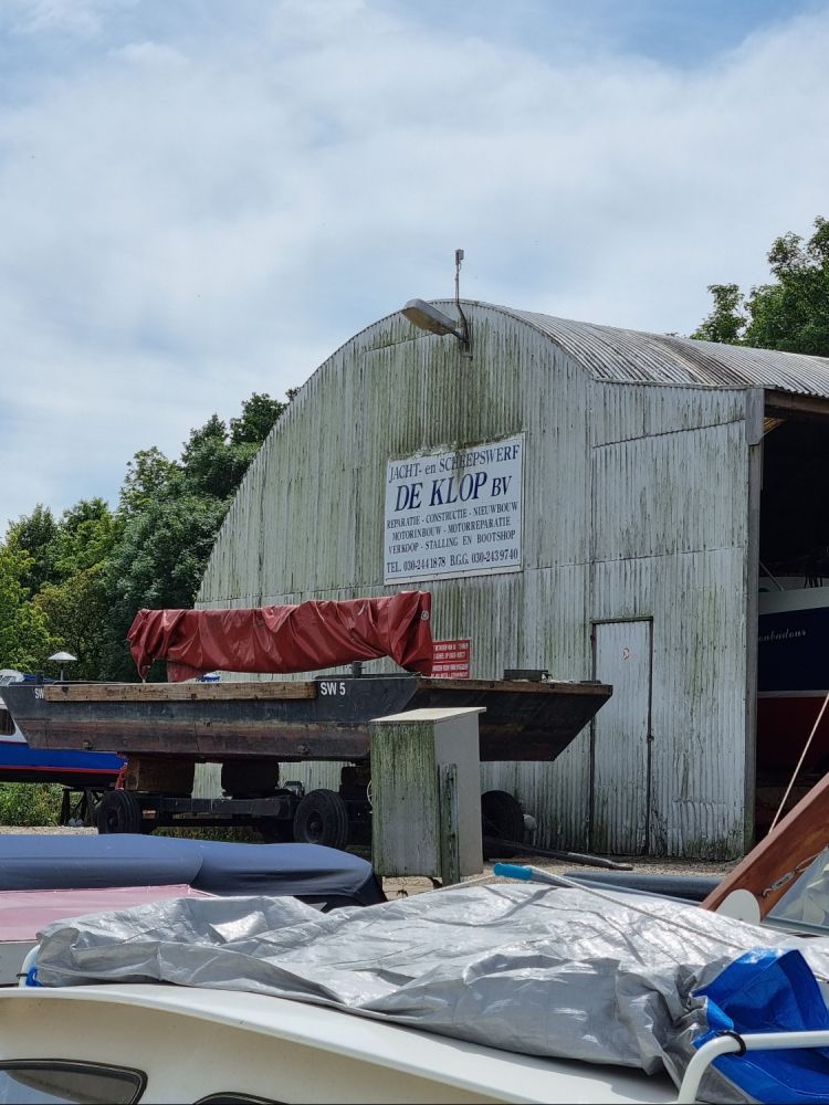Aan de kant zagen we een bootje liggen bij een soort industrietereintje. 'He, waar is hier ergens een tankstation?' 'Hier verkopen ze wel diesel, als je in nood zit', gaf de schipper aan. Dus wij gedraaid en aangelegd bij het terein. Bleek dat we aangelegd waren bij een jachtwerf! Wat een geluk!