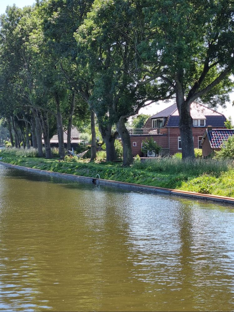Omdat het op de boot snikheet was (geen schaduw goenoeg om fatsoenlijk te kunnen zitten) al snel de koelte van bomen opgezocht aan de kant.
