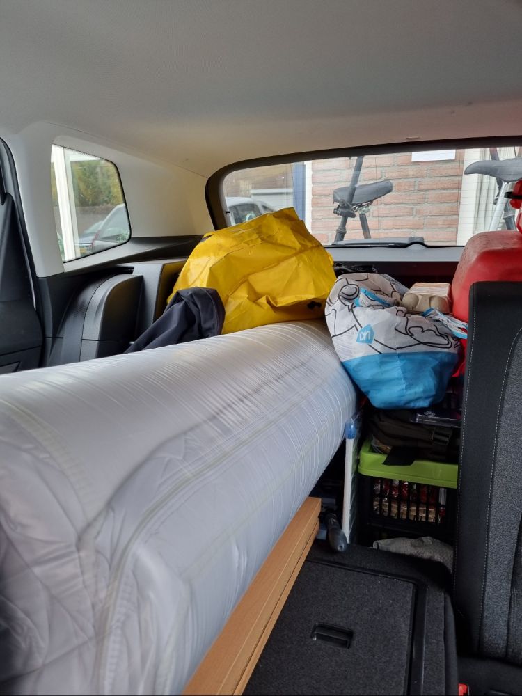 Marjan en ik hebben ons nieuwe bed op maat gemaakt en ons oude bed, in stukken in vuilniszakken, in de container gegooid. Was best wat, dus de container was plots erg vol. De havenmeester is volgens mij nog steeds op zoek naar de onverlaat die zomaar zoveel grofvuil achter heeft gelaten..