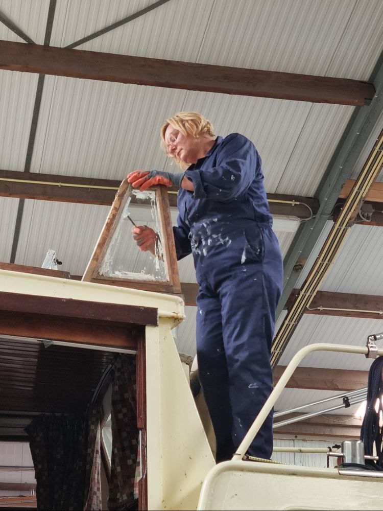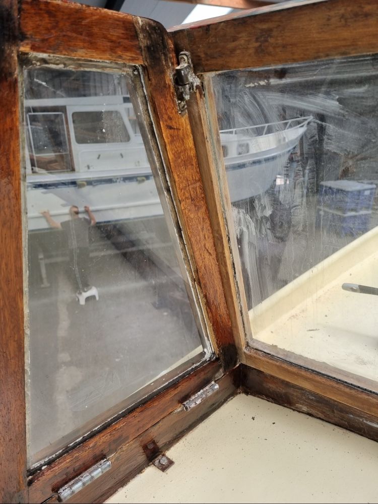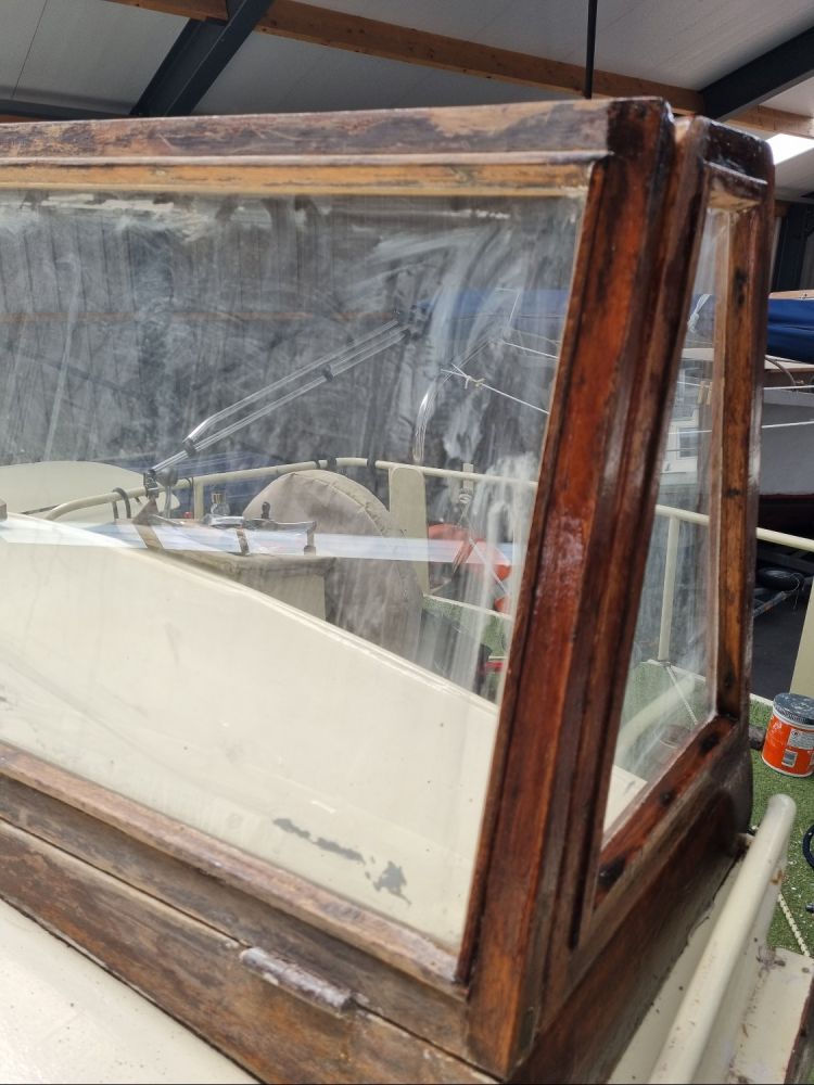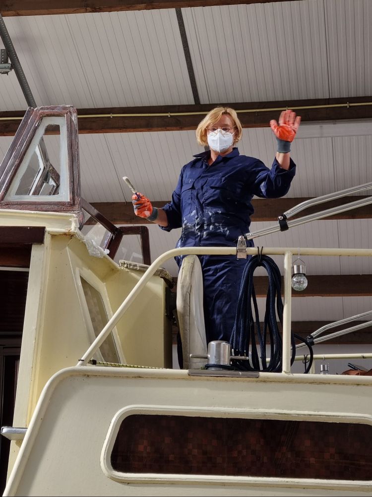 Naast het onderwaterschip gaan we ook de kleine roestplekjes op het bovenschip bewerken en al het hout. Dat wil zeggen de deuren en het scherm bovenop. Stapje voor stapje, dan komt het goed..