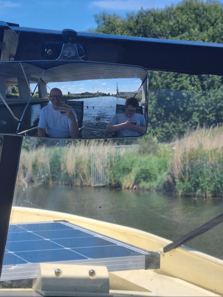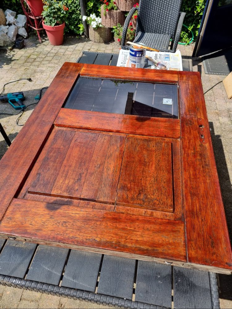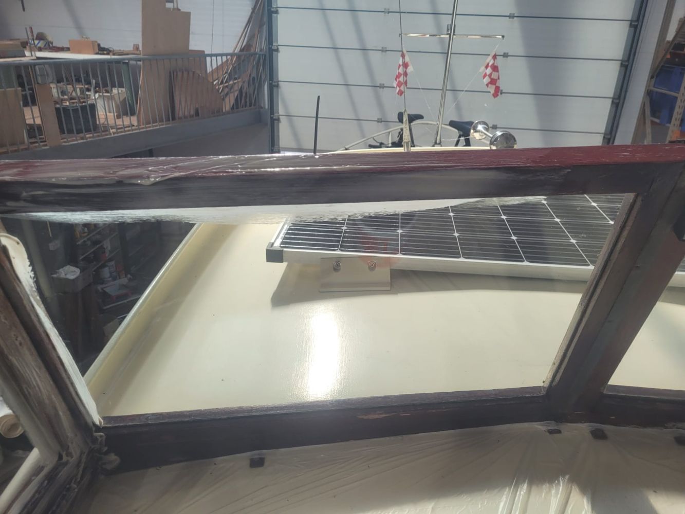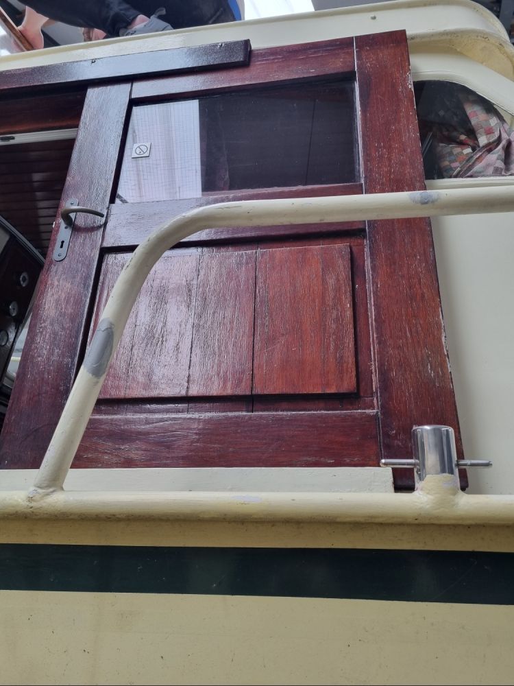 De deur aan bakboord hebben we vorige week meegenomen om opnieuw in de verf te zetten, Met de verfbrander alle oude lak verwijderd en 2x opnieuw gelakt. Vandaag hebben we de deur aan stuurboord meegenomen. Daar gaan we morgen aan beginnen.