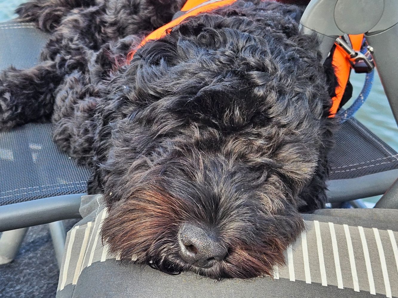 Het weer was geweldig. De hele weg zonder kapje kunnen varen. Met het zonnetje erbij werd het al snel warm, maar door het briesje totaal geen last van. Zelfs Jasper niet.