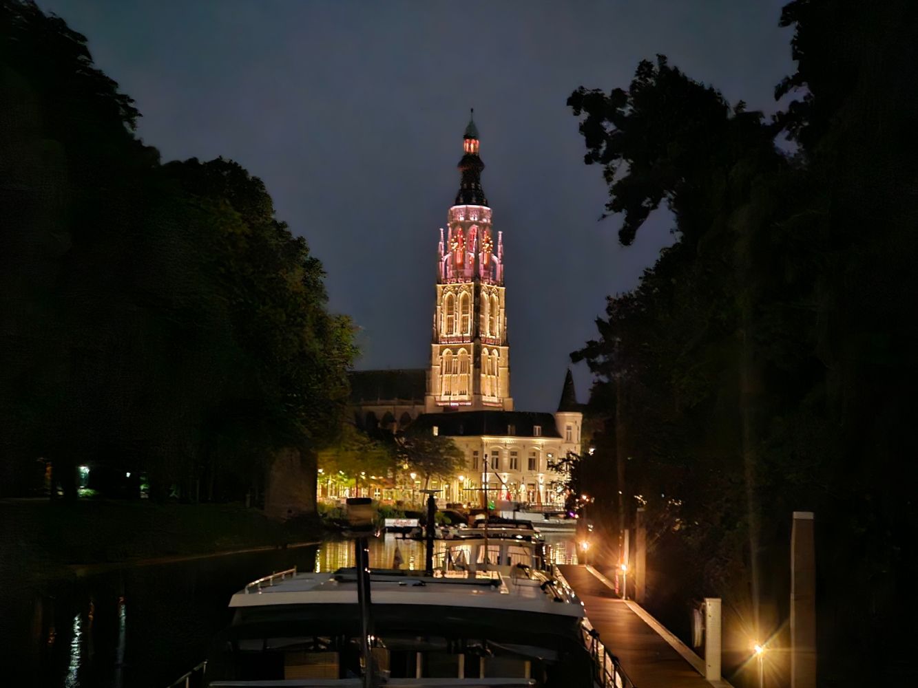 De Passantenhaven van Breda bestaat uit 3 delen: De Luwte, bij Centraal Station, Prinsenkade Noord, net voor het centrum en Prinsenkade, pal in het centrum. Wij hebben ervoor gekozen op Noord te gaan liggen. We vonden een geweldige plek, vlakbij de uitgang met uitzicht op de Grote Kerk. Ook vlakbij het sanitair... Dat was niet best. Oud en versleten, zonder WC papier, handdoekjes en zeepjes. Het was schoon, maar daar was alles mee gezegd.