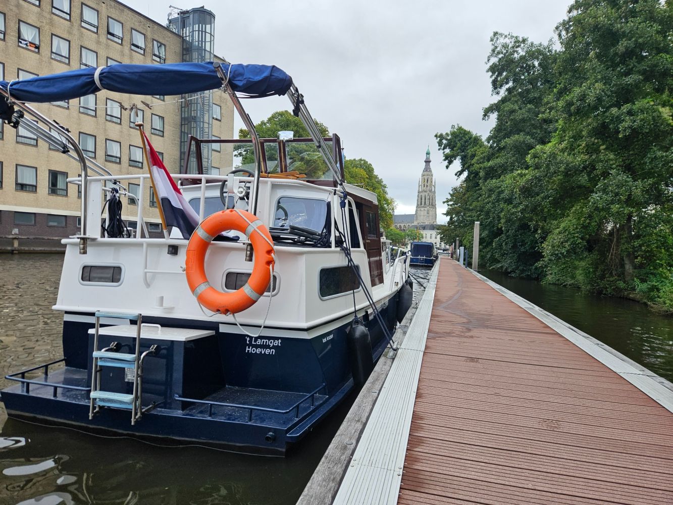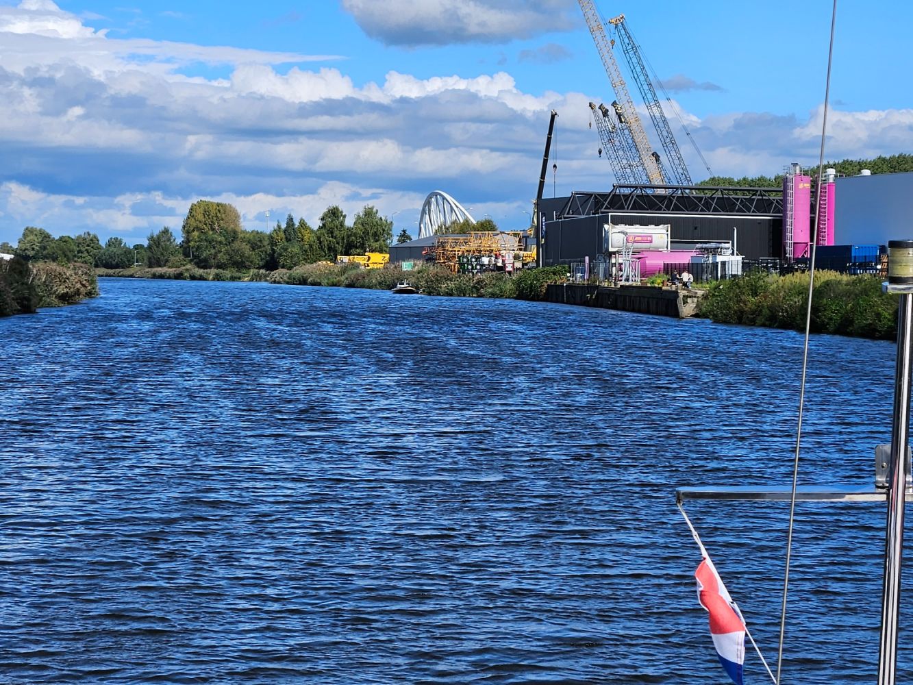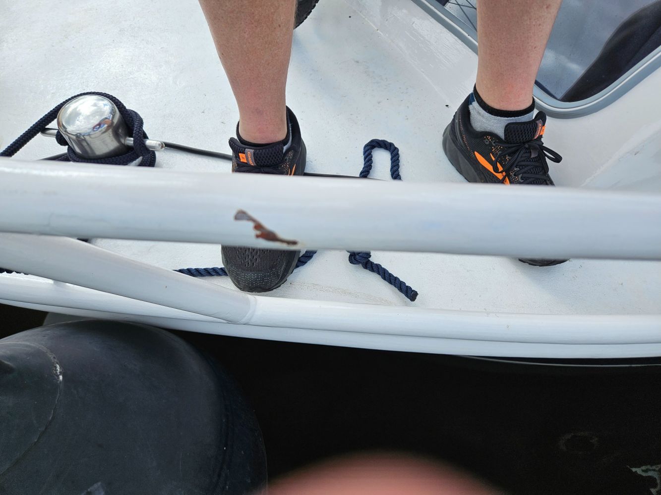 Marjan moest op het achterdek nog de touwen wat vieren, maar Jasper wilde de andere kant op. Gevolg? Jasper te water! Gelukkig had hij zijn zwemvest aan zodat we hem op.de kant konden hijsen. Note to self: Jasper vastzetten als.we ergens aankomen..