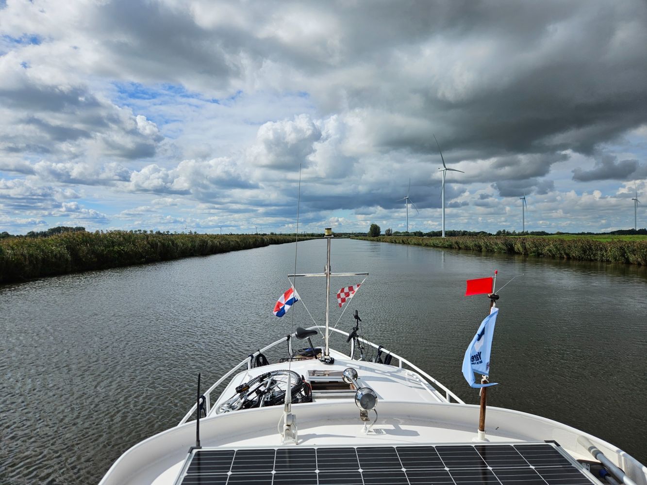 Het zonnetje kwam er lekker door en bijna de hele weg in het zonnetje kunnen varen. Bijna bij de thuishaven kwamen wat donkere wolkjes en begon het weer stevig te waaien. En dat was niet zo prettig..