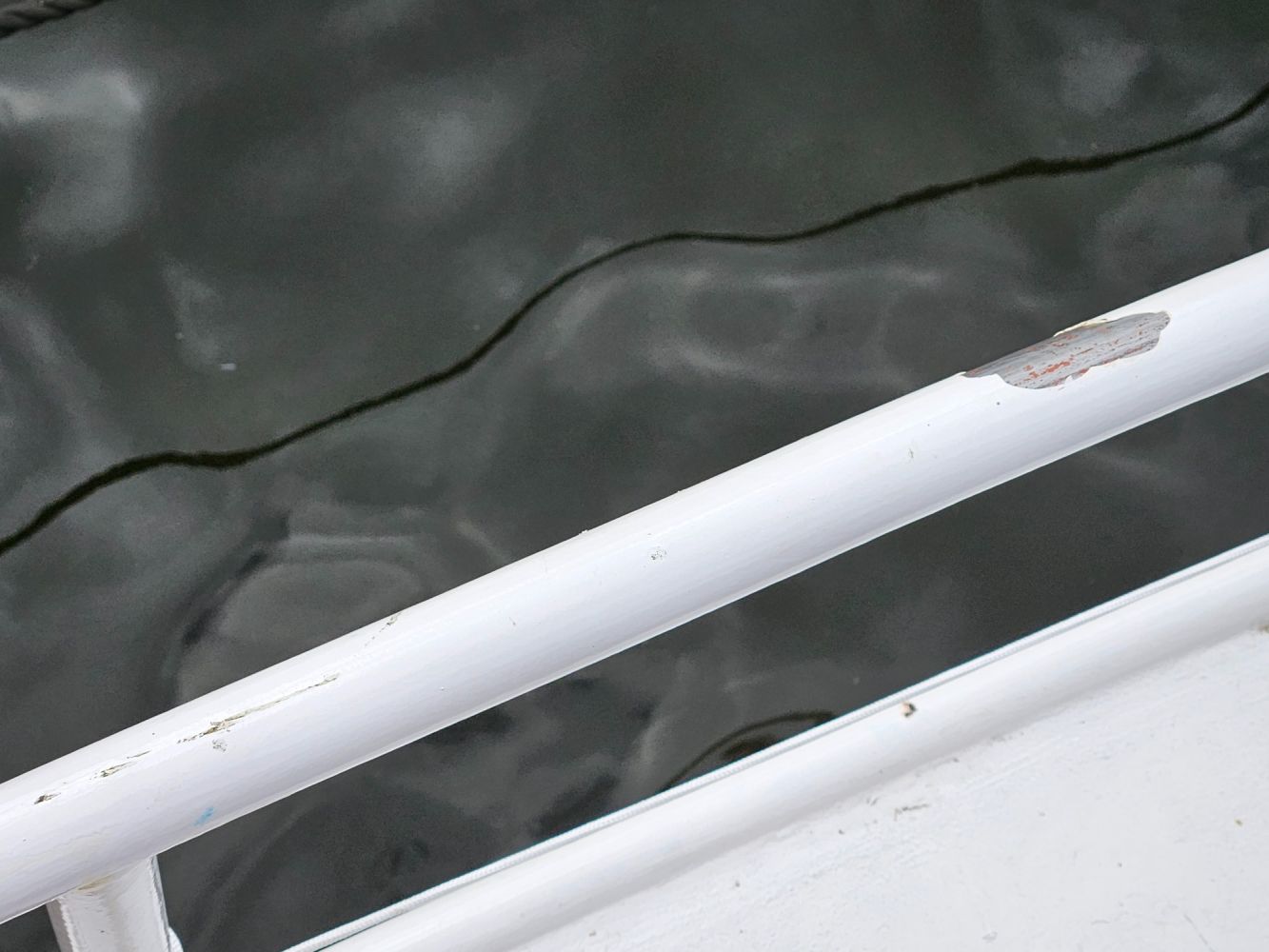 Gearriveerd in de haven moesten we uiteraard afmeren in de box. En dat lukte helaas niet. We waaiden volledig weg en de eerste schade was een feit.. Gelukkig alleen aan de railing dus snel te herstellen.