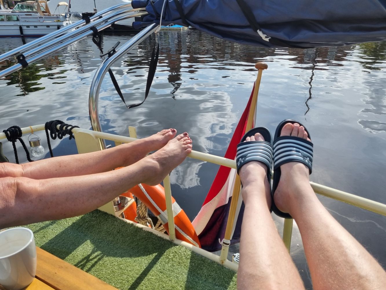De Mark is niet mooi, maar wonderschoon in vergelijk met de Hoogevaart, in de Flevopolder.. Gewoonweg lelijk! Maar met de zon op de kop, kon ons dat niets schelen. Domweg zitten staren is ook wel eens lekker.