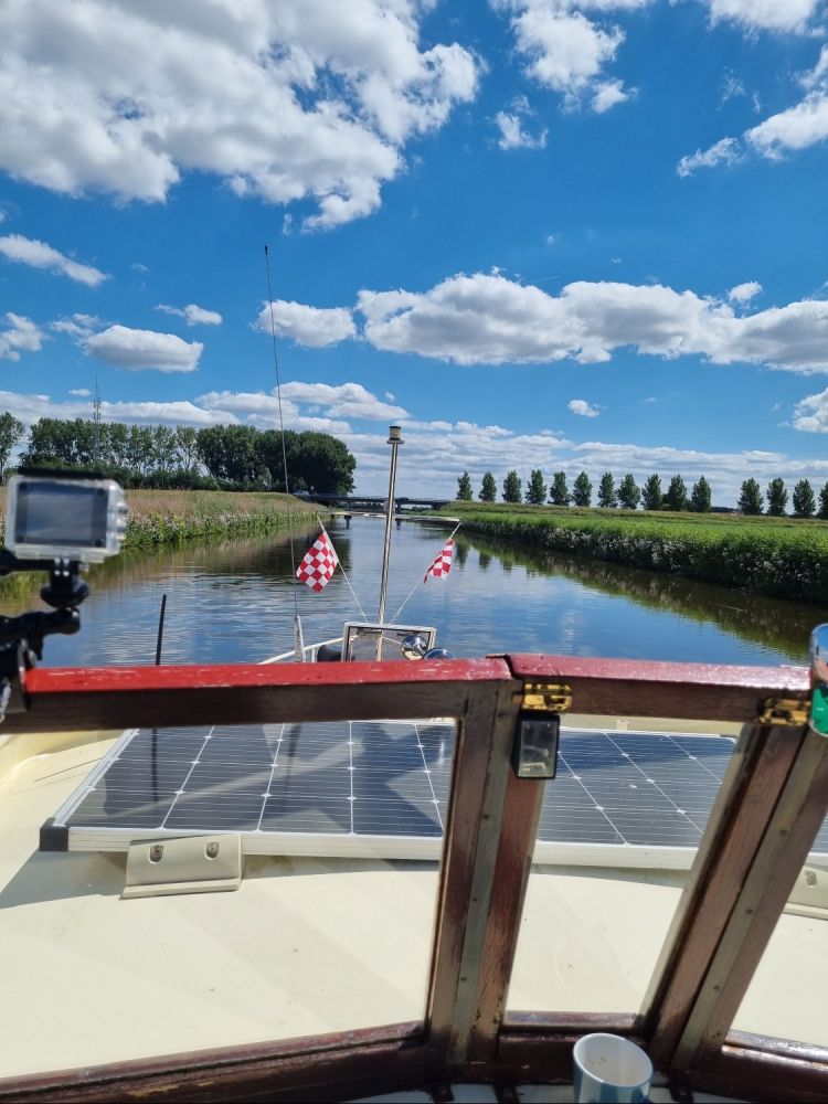 Deze route is, na een paar korte dagen, een lange van 46 kilometer. We denken hier ongeveer 6 uur over te gaan doen. We hebben 2 bruggen en 1 sluis, maar we gaan wel wat groter water over.