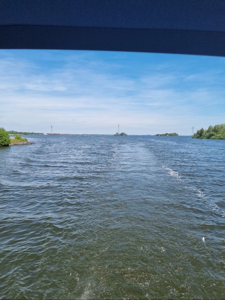 Gisteravond namen we de route van vandaag nog even door. Eigenlijk zoals we iedere avond de route van de dag erna doornemen. Voor de eerste sluis waar we doorheen moesten, was een waarschuwing afgegeven dat er werkzaamheden waren en de sluis tot 12.00 uur gesloten was. Gezien het van Biddinghuizen tot aan de sluis slechts 1,5 uur varen was, lekker uitgeslapen en pas om 11.00 uur vertrokken. De buurtjes nog even dag gezegd, gezwaaid naar de havenmeester en, hop, er van tussen.