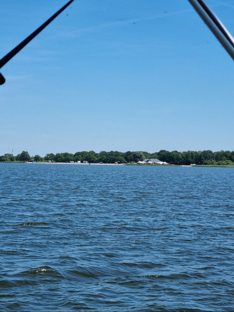 Toen het open water op. Het waaide bijna niet en was het goed toeven. Mooi uitzicht over Strand Horst en Nulde. En uiteraard de A28 waar we zo vaak overheen hebben gereden.