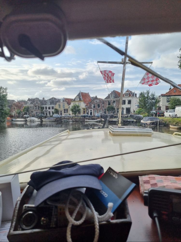 En daar lagen we.. Het eerste wat in ons opkwam, was de Botenwacht bellen. Maar die gaven aan ons alleen te kunnen helpen als we aan de kant zouden liggen. En dan ook nog bereikbaar zouden zijn per auto. Met kunst en vliegwerk, door het klimmen door tuinen van bewoners daar, probeerden we de kant te bereiken. Gelukkig kwam daar een andere schipper met een heel klein bootje die ons even naar de kant kon brengen.